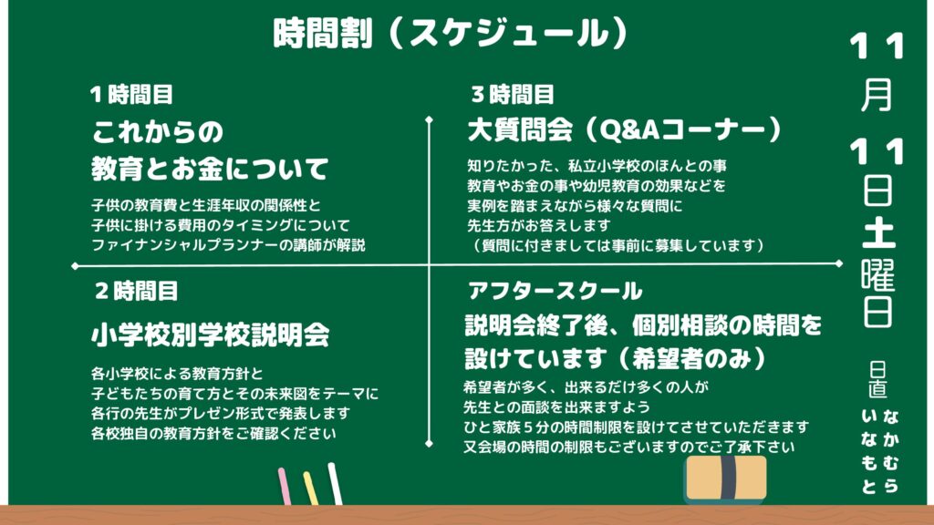 11月11・12日 私立小学校 秋の大説明会 教育とお金セミナー 申込みはこちらをクリックして下さい
